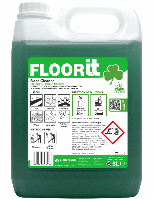 A neutral, green floor cleaner which is suitable for use on all hard floors.